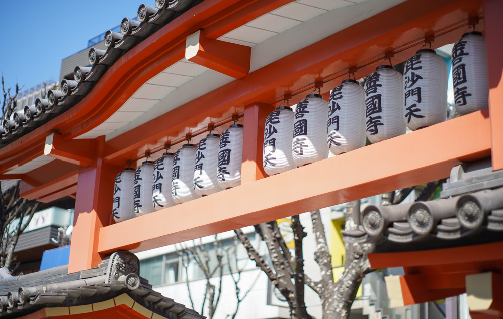 善國寺(ぜんこくじ)は、東京都新宿区神楽坂にある日蓮宗の寺院で、通称「神楽坂毘沙門天(毘沙門さま)」として親しまれています。文禄4年(1595年)に池上本門寺第12代貫主・日惺上人が馬喰町に創建し、火災などを経て寛政5年(1793年)に現在地へ移転しました。開基は徳川家康と伝わり、本尊の毘沙門天は芝・正伝寺、浅草・正法寺と並び「江戸三毘沙門」と称されます。現在は新宿山ノ手七福神(毘沙門天)の札所でもあります。また、区指定文化財の毘沙門天像や、本堂左右に置かれた一対の「石虎」(区指定有形民俗文化財)も見どころです。