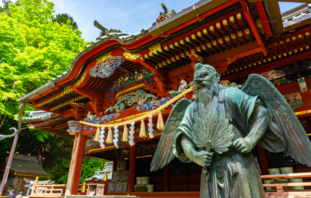 高尾山薬王院(正式名:高尾山薬王院有喜寺)は、東京都八王子市の高尾山にある真言宗智山派の寺院で、関東三大本山の一つ。創建は天平16年(744)に行基が開山したと伝わり、当初は薬師如来を本尊としたことが「薬王院」の名の由来。南北朝時代の永和年間(1375〜1379)に俊源が入山し、飯縄権現を守護神として奉祀して以降、飯縄信仰の霊山として栄え、修験道の道場としても知られる。参道のスギ並木は「八王子八十八景」に選ばれている。