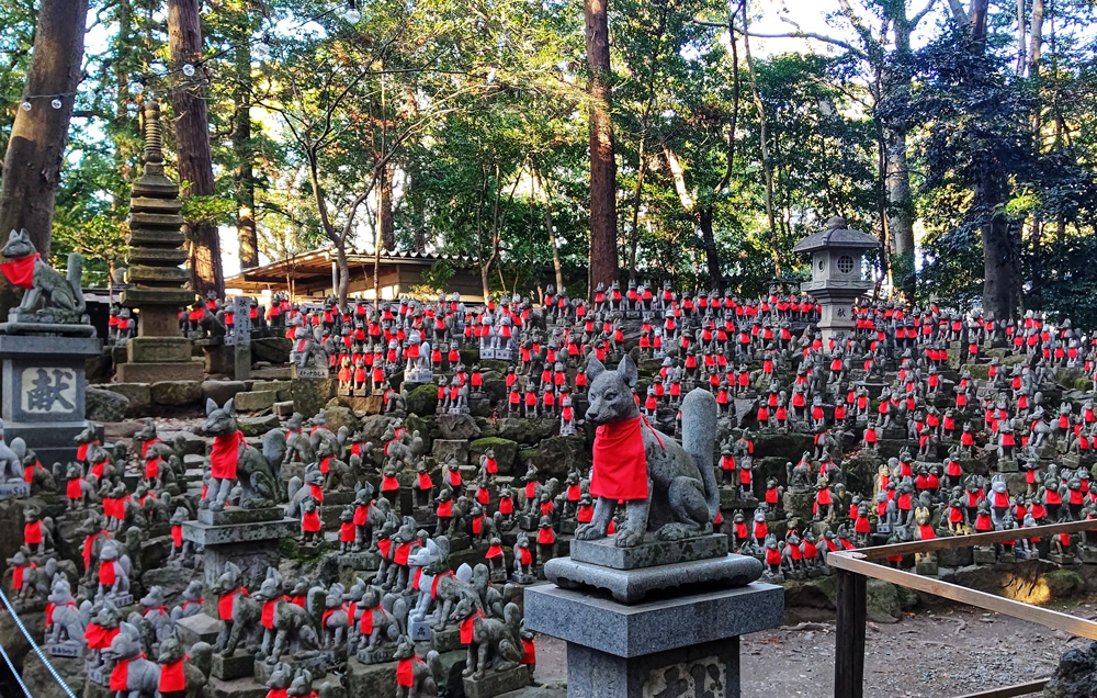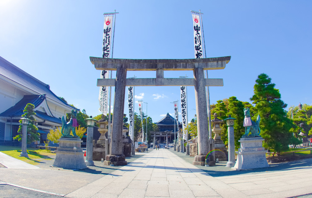豊川稲荷(正式寺号:円福山 豊川閣 妙厳寺)は、愛知県豊川市にある曹洞宗の寺院で、本尊は十一面千手観音。嘉吉元年(1441年)に東海義易が創建し、のちに今川義元が伽藍を整備したとされます。一般に「稲荷」と呼ばれるのは、境内の鎮守として祀られる秘仏・豊川吒枳尼真天(だきにしんてん)に由来し、寺院でありながら参道に鳥居が立つ点が特徴です。戦国期には武将の帰依を受け、江戸時代には大岡忠相らの信仰も背景に、立身出世・盗難避けなどの祈願で庶民にも広まり、江戸参詣所(後の東京別院)も生まれました。現在も別院を持ち、年間約500万人が参拝するとされます。